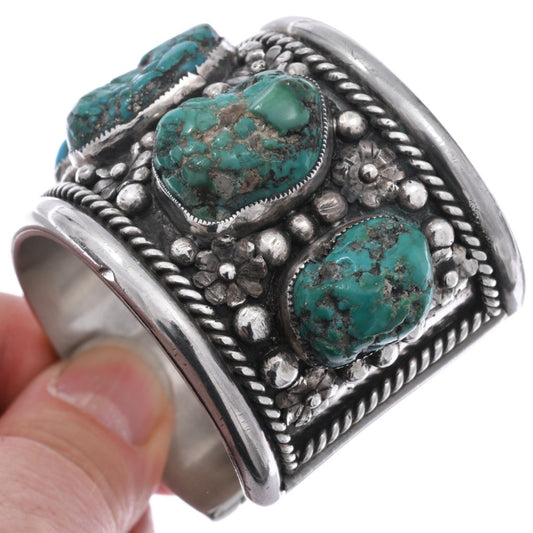 Vintage Heavy Gauge Sterling + Kingman Turquoise Cuff