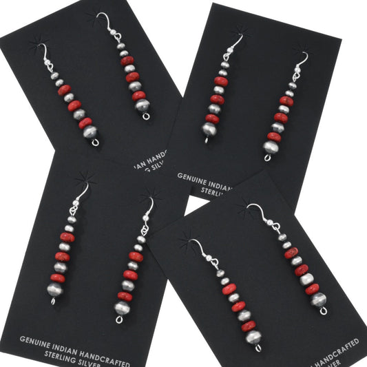 Sterling Silver & Coral Stacked Beaded Earrings