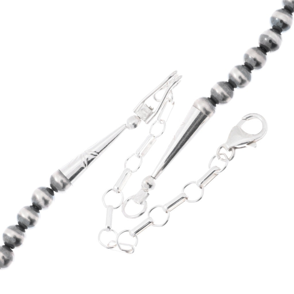 Sterling silver 6mm desert pearls and Kingman turquoise choker necklace