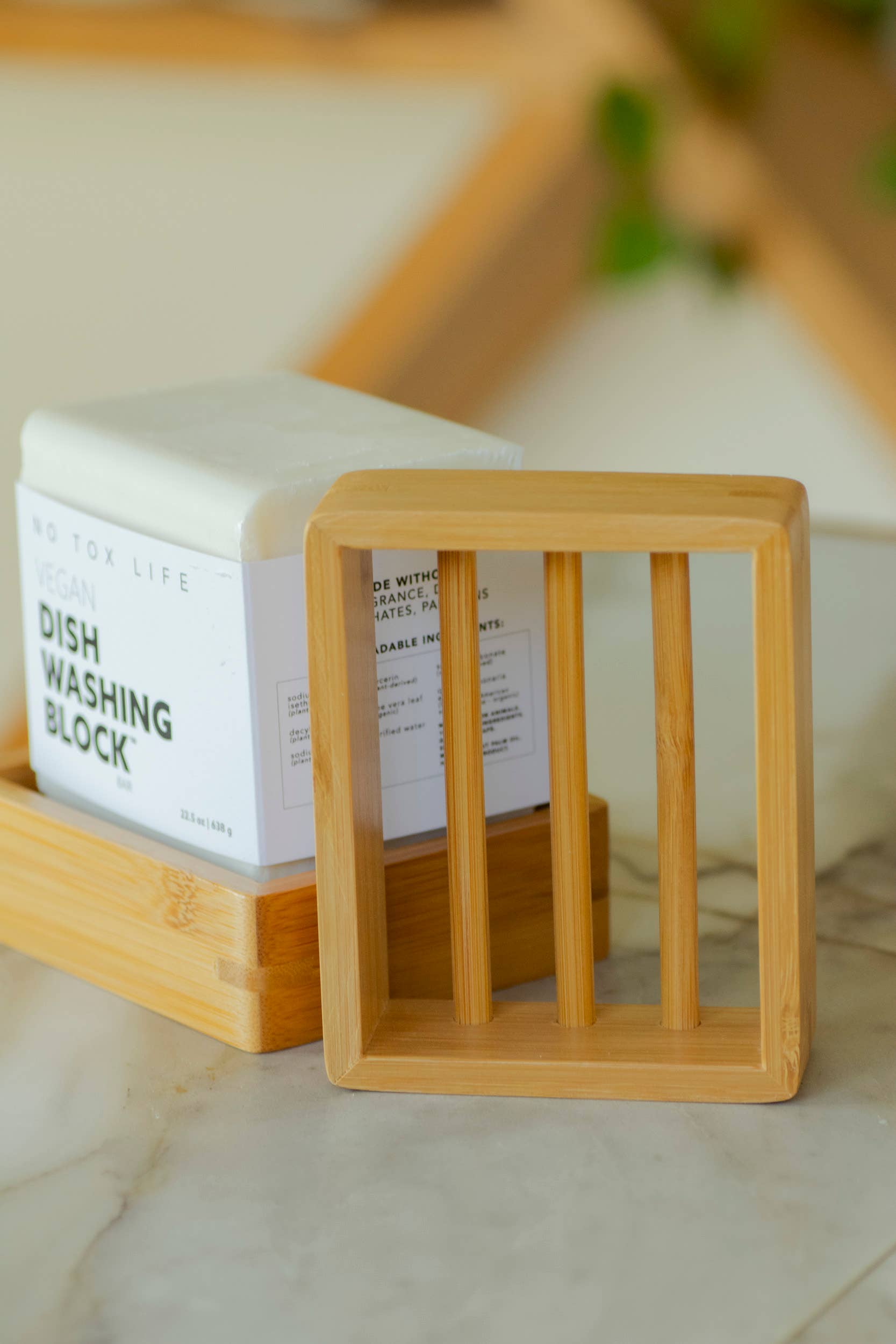 Moso bamboo, also known as giant or timber bamboo, has been used for centuries in everything from buildings to cooking tools. Its young shoots are sometimes even featured in Asian dishes. Keep your Bamboo Soap Dish in a spot with good drainage, or elevate it to keep it out of standing water. It will need to be replaced over time, depending on where you put it, if you let it sit in water, and your climate and humidity. Don't worry, bamboo naturally biodegrades, so this item can be composted when its time comes.