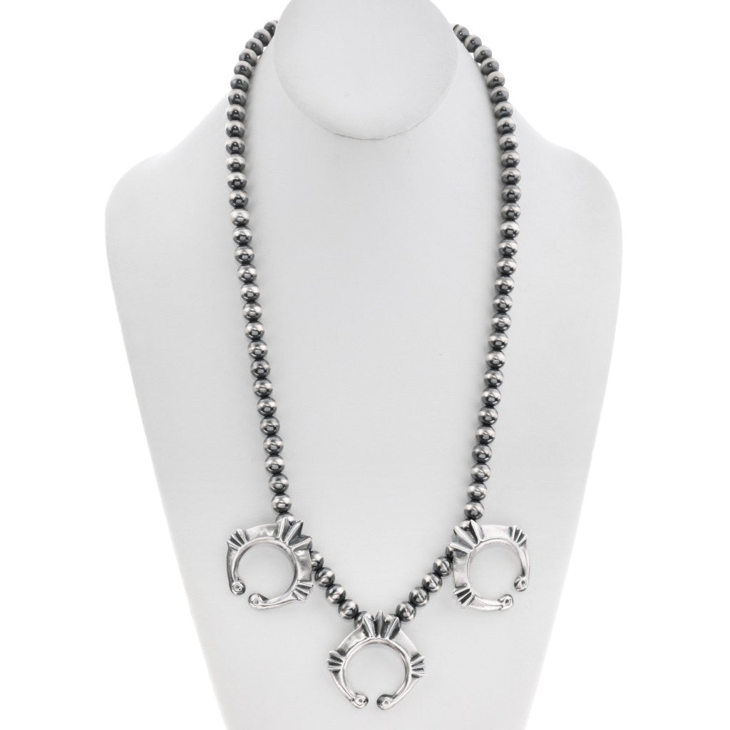 Navajo Sterling Silver Beaded Naja Necklace-25” long