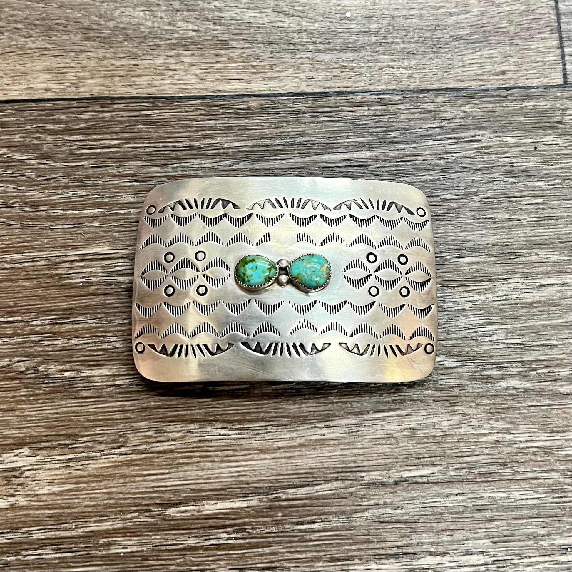 Navajo Turquoise Stamped Sterling Belt Buckle