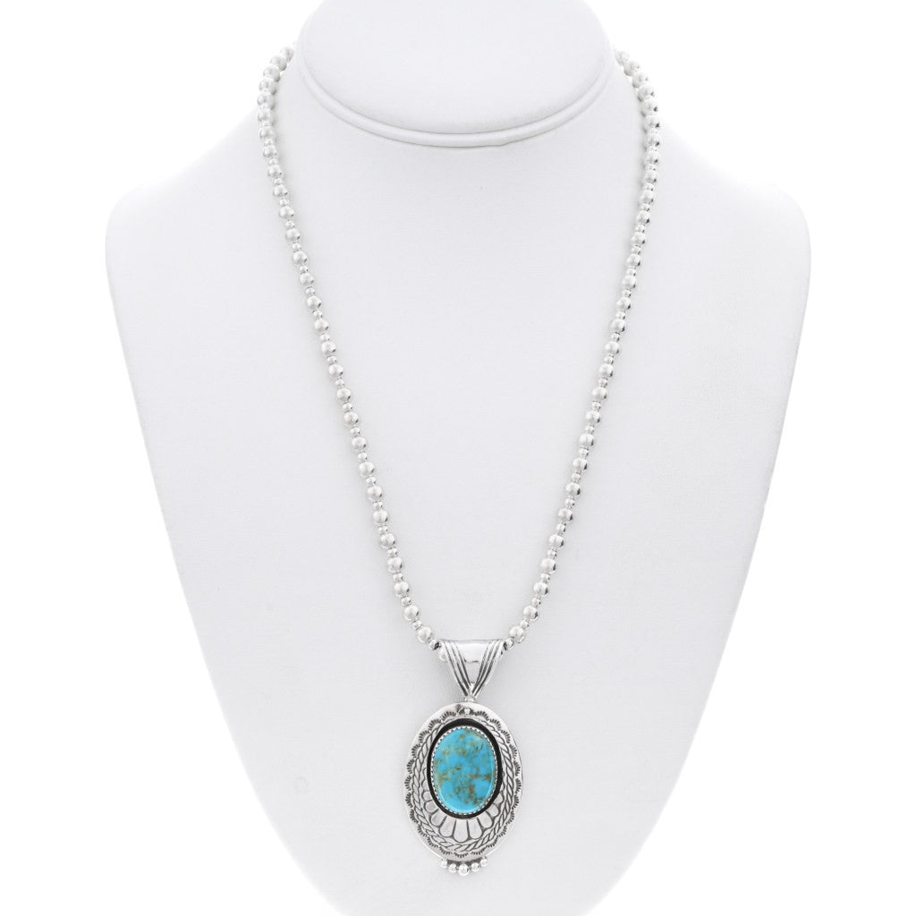 Beautiful aqua blue Patagonia turquoise and sterling silver shadowbox pendant.