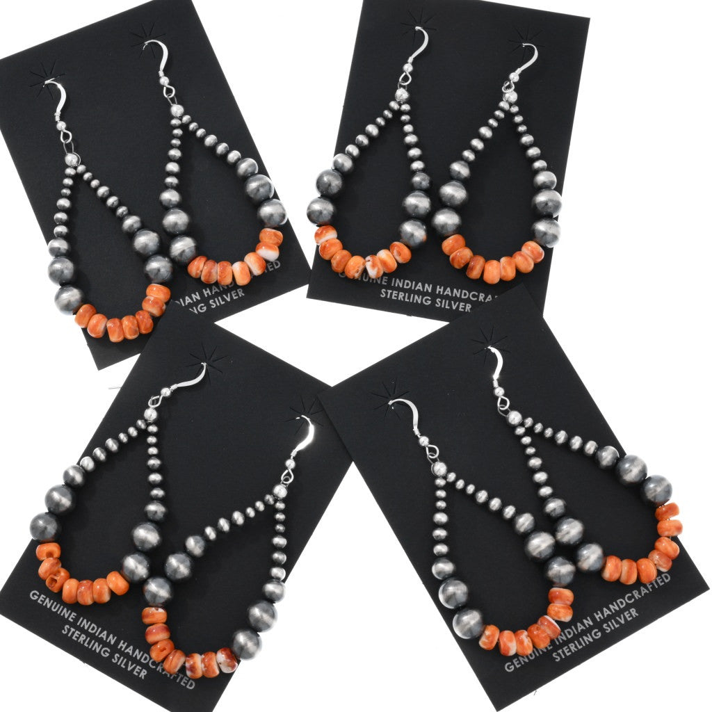 Perfect pair of everyday Navajo spiny & sterling silver pearl hoop earrings!