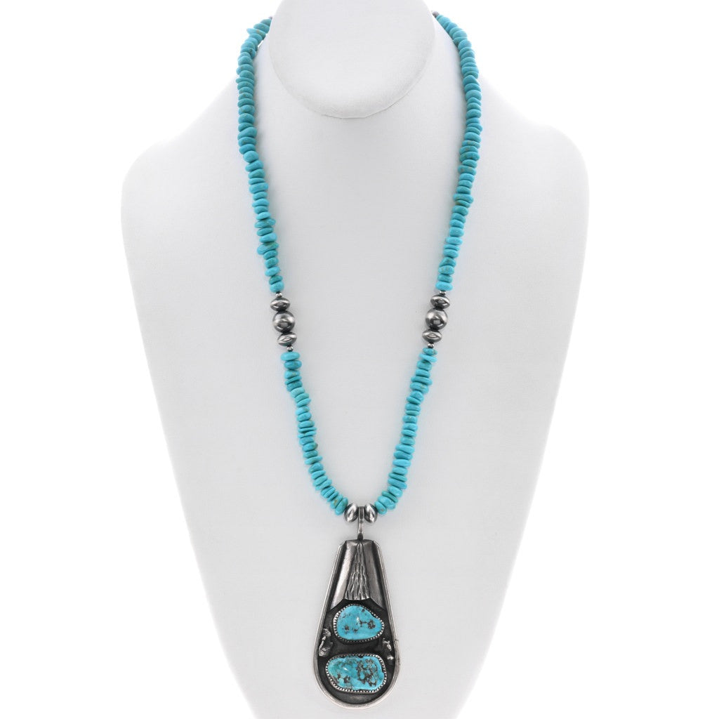 Vintage Kingman Turquoise Pendant + Beaded Necklace